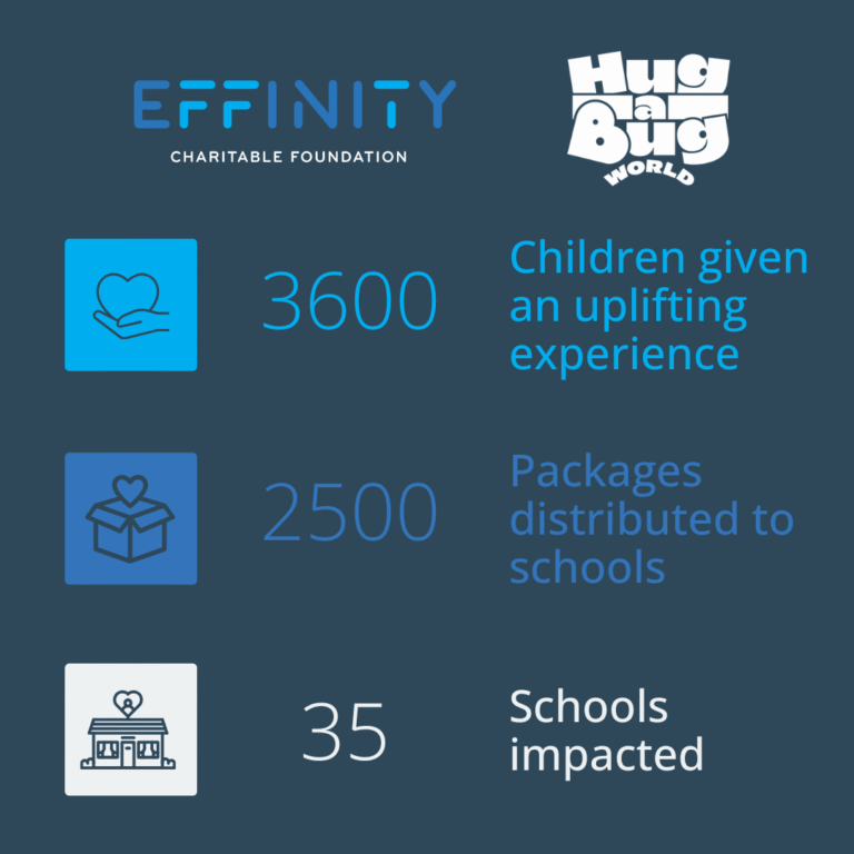 Thanks to donations and the amazing work carried out by Hug-a-Bug, 35 schools, and over 3,600 children, were given an uplifting and empowering experience. Every child took home materials to continue their learning and well-being journey beyond the classroom.